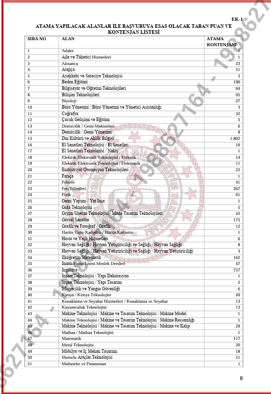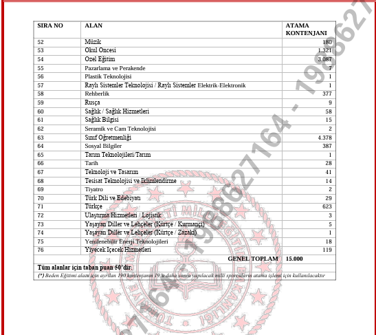 2024-2025 Kontenjan Özel Eğitim: 3087